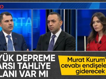 tv100 canlı yayınında soruları yanıtlayan Etraf, Şehircilik ve İklim Değişikliği Bakanı Murat Kurum, tüm sarsıntı senaryolarına karşı tahliye planlarının hazır olduğunu belirterek, "Bütün zelzeleler için...